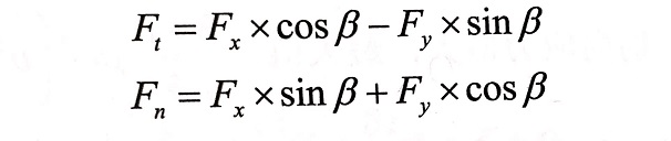 為了研究方便,昌利將作用力的合力簡化合成一對力,分解為水平力Fx和垂直力F,或分解為切向力F和反向力Fn。